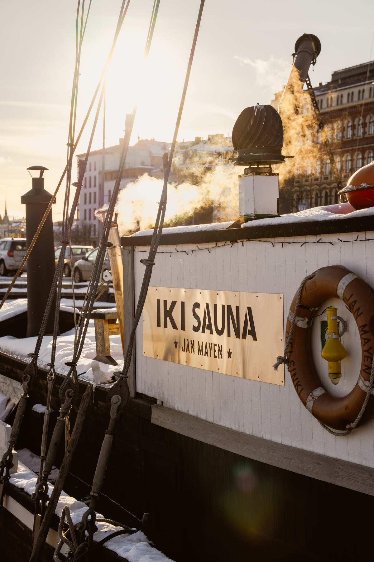Ravintola ja sauna 1914 rakennetussa kuunarissa – laadukkaita juomia, pientä suolaista ja puulämmitteiset löylyt Helsingin Kruunuhaassa.